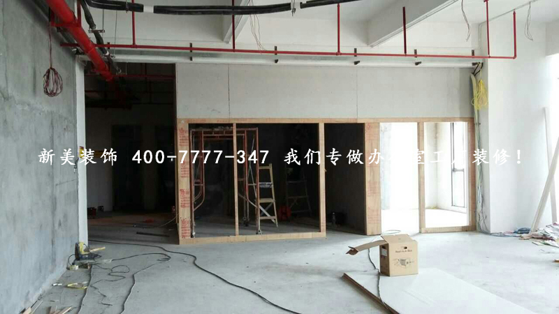2015年5月8日,新美裝飾最前線的工作人員有序的進行著工作,打造舒適的辦公室。微科易控工地工地已進入到木工階段,現場工人穿工衣上崗,衛生干凈整潔。